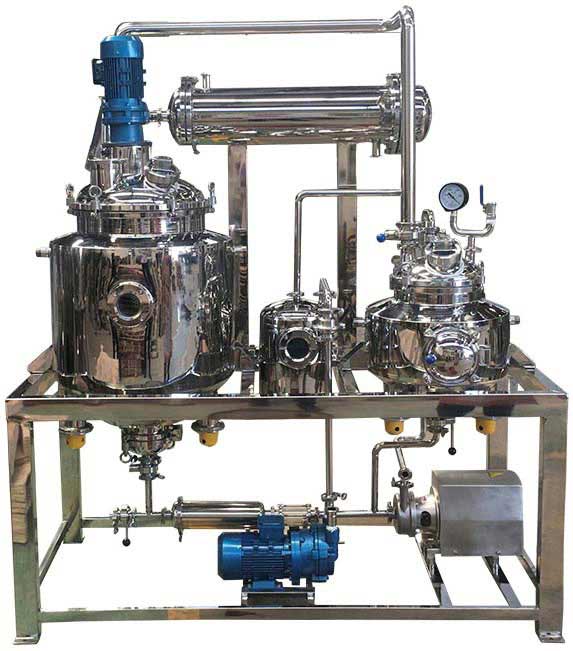 小型实验用提取浓缩机组学校实验型中药萃取浓缩收膏机组中草药植物精油提取罐 1.本设备具有占地面积小、制作精致、配套齐全、操作方便等优点。特别适合于小批量、多品种的生产方式。 2.本设备配备:真空泵、药