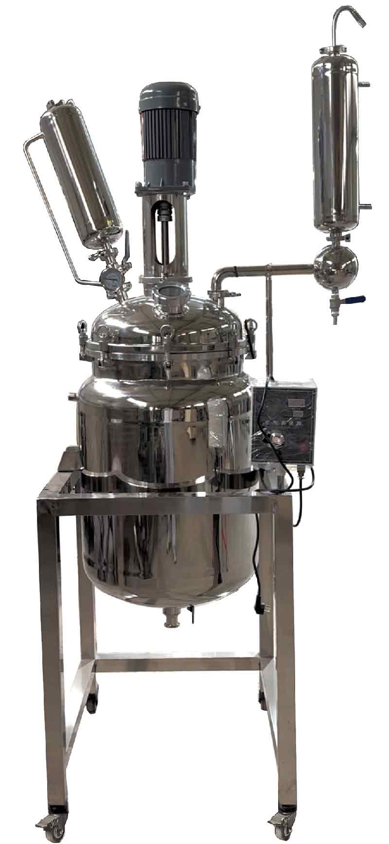 双层不锈钢反应釜实验室小型高温高压蒸馏真空反应器 双层不锈钢反应釜为双层不锈钢设计,内层放入反应溶媒可做搅拌反应,夹层通上不同的冷热源(冷冻液,热水或热油)做循环加热或冷却反应。在设定恒温条件下,在密